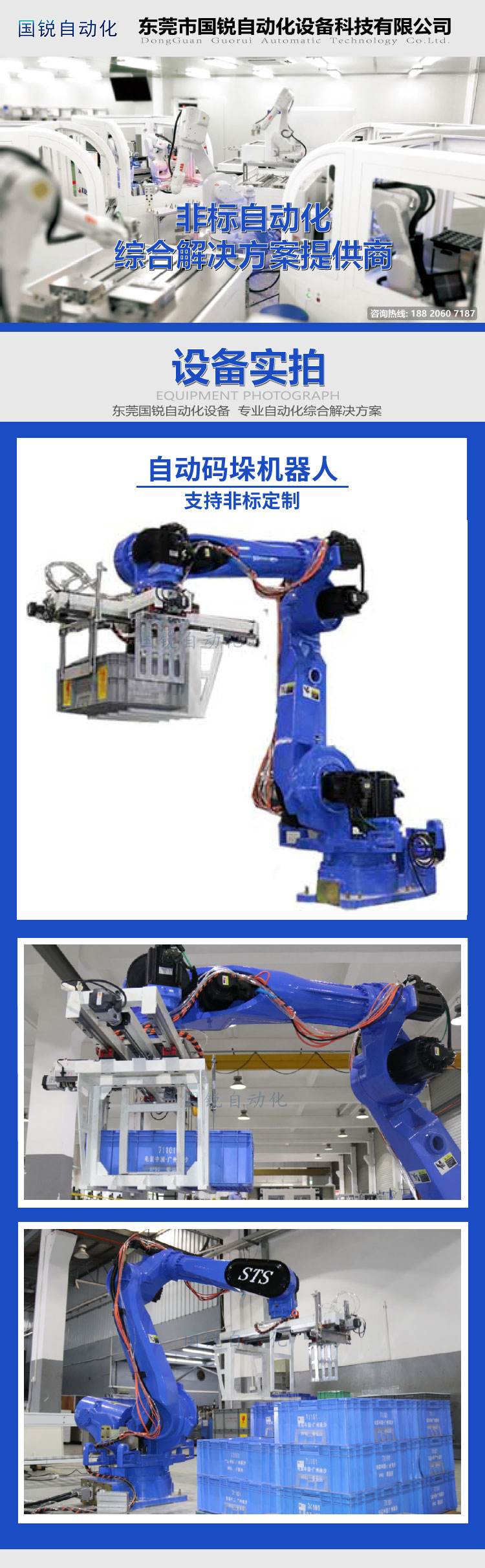 安裝方式:落地式機(jī)器人碼垛系統(tǒng),智能、高效,具有靈巧輕便的機(jī)械機(jī)構(gòu)及靈活的作業(yè)動(dòng)作。