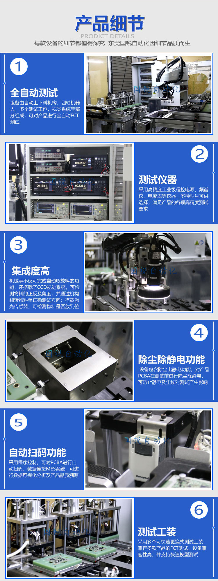 采用工業(yè)機器人輔助測試,可實現全自動測試