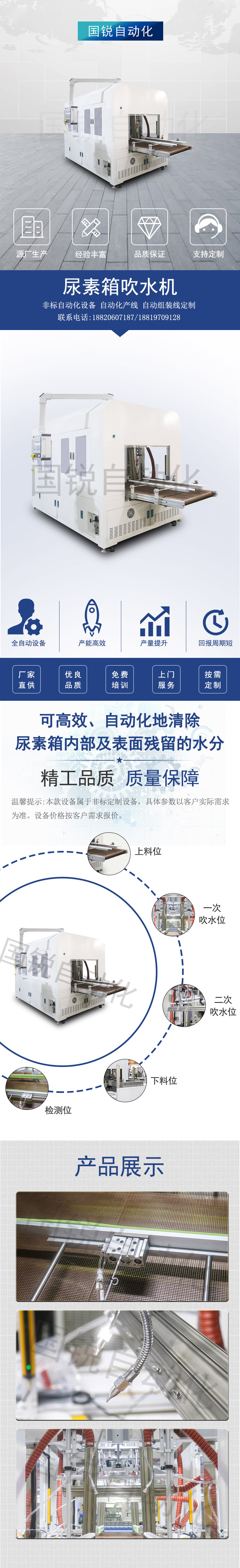 占地面積:4.62㎡電源:AC220v壓縮氣體:0.5MPa-0.8MPa產(chǎn)能:20S/PCS(性能測(cè)試時(shí)間80秒)配備人數(shù):1人搬運(yùn)設(shè)備:收料皮帶+推料氣缸 兼容產(chǎn)品:1000-1000-550mm以下尺寸尿素箱吹干設(shè)備:風(fēng)刀