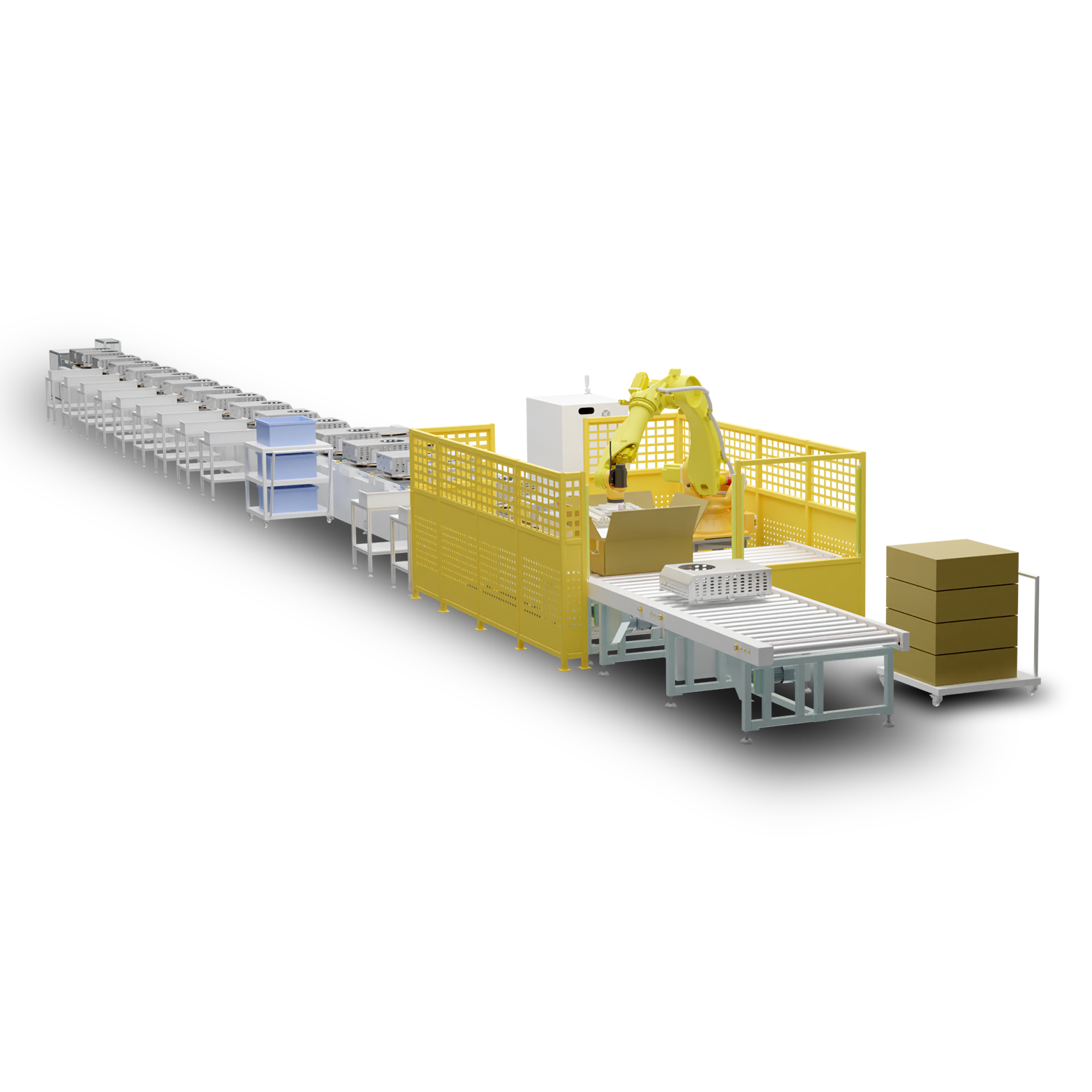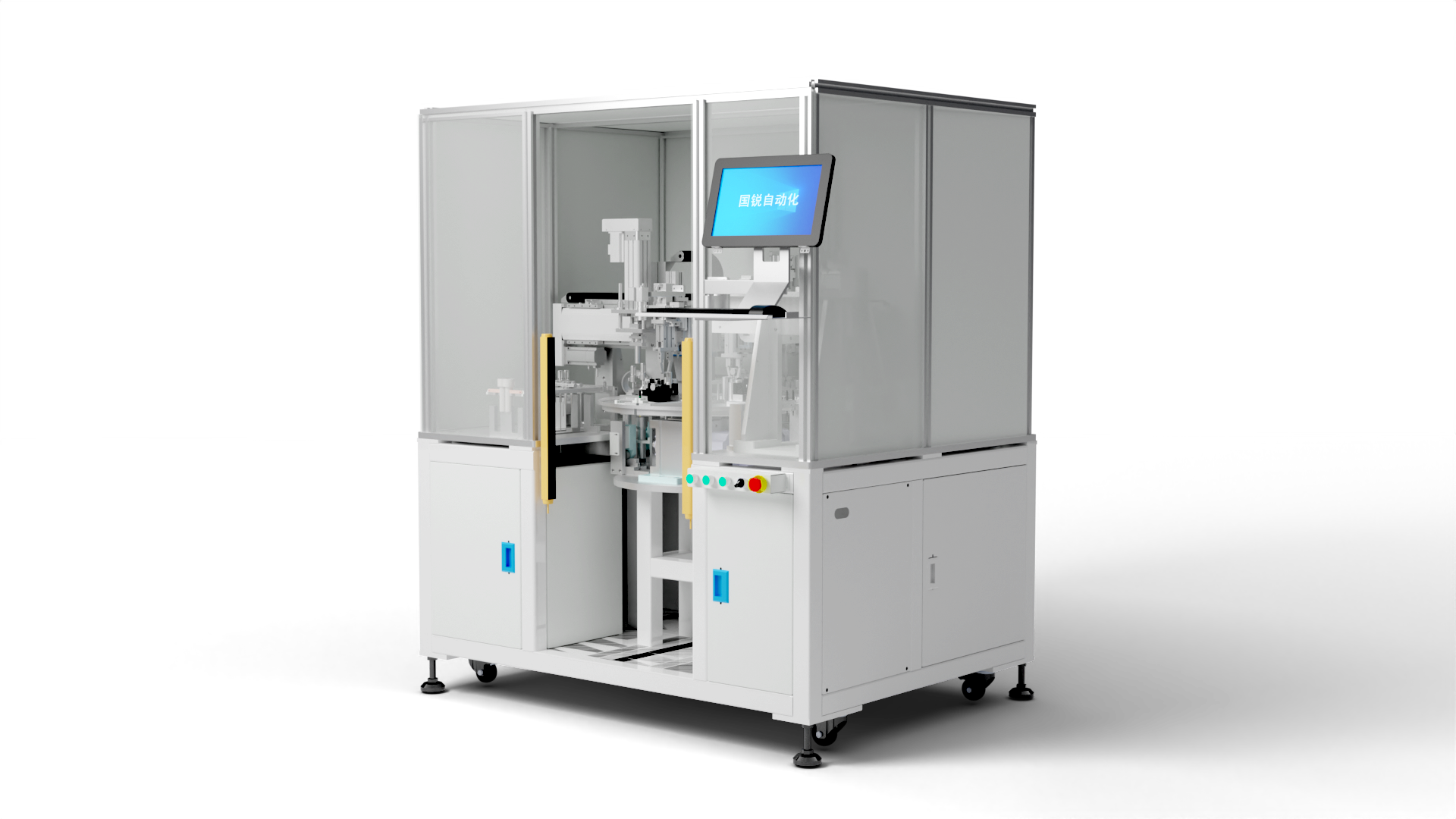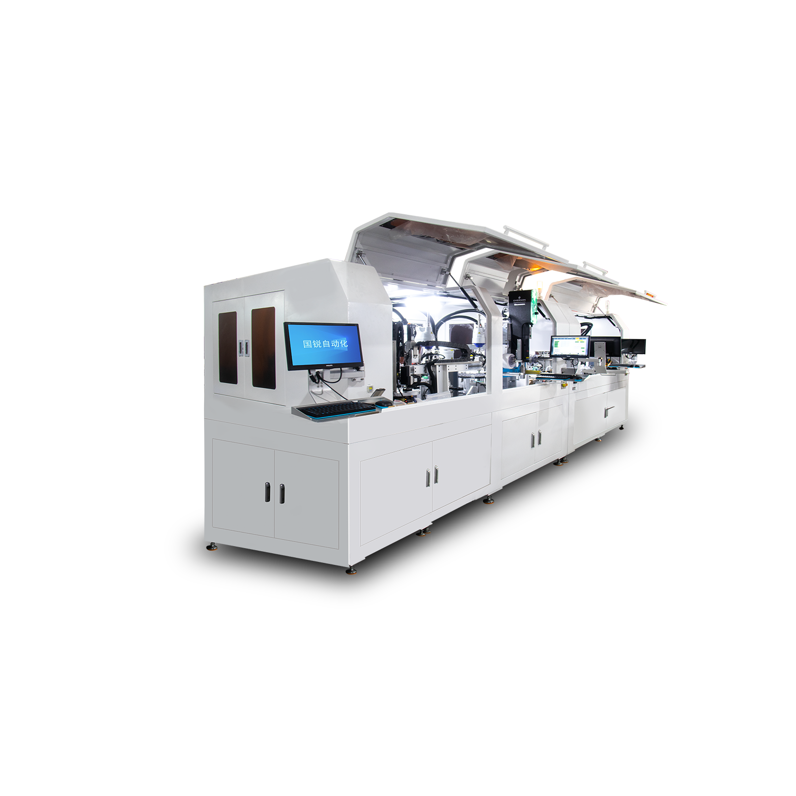 產(chǎn)線集成各工件自動(dòng)上下料、組裝、焊接、綜合測(cè)試、鐳雕等功能,產(chǎn)線布局簡(jiǎn)單緊湊,模塊化設(shè)計(jì),采用分度轉(zhuǎn)盤實(shí)現(xiàn)治具共用,兼容多款產(chǎn)品同時(shí)作業(yè),生產(chǎn)效率高。MES系統(tǒng)實(shí)時(shí)監(jiān)控生產(chǎn)過程,支持產(chǎn)品追溯。