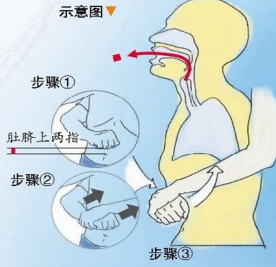 海姆立克急救術(shù)位置定點:臍上約2橫指到胸廓下的腹部