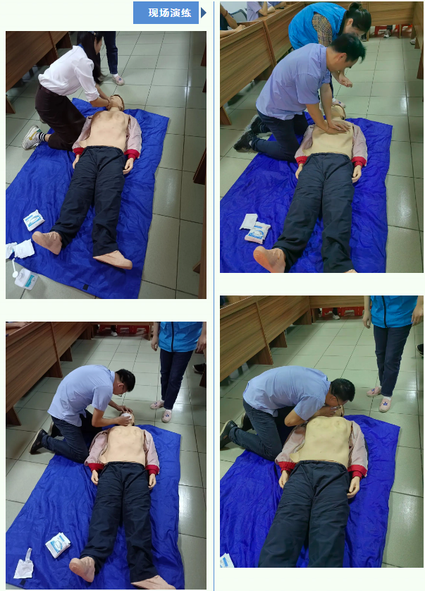 采用線下培訓(xùn)和實操演練相結(jié)合的形式,培訓(xùn)心肺復(fù)蘇的定義、適用范圍、操作流程、注意事項等施救知識及應(yīng)急處置實操內(nèi)容。培訓(xùn)中,社區(qū)專業(yè)全科主管護(hù)師通過講解現(xiàn)實案例以及人體模型示范的方式,讓大家更為真切、迅速了解應(yīng)急救護(hù)的有關(guān)知識和技巧,并就如何正確心肺復(fù)蘇的操作流程進(jìn)行了指導(dǎo)。