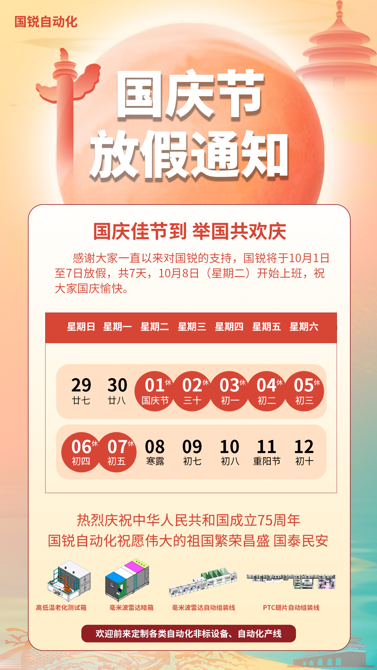 國銳自動化 │ 2024國慶節(jié)放假通知