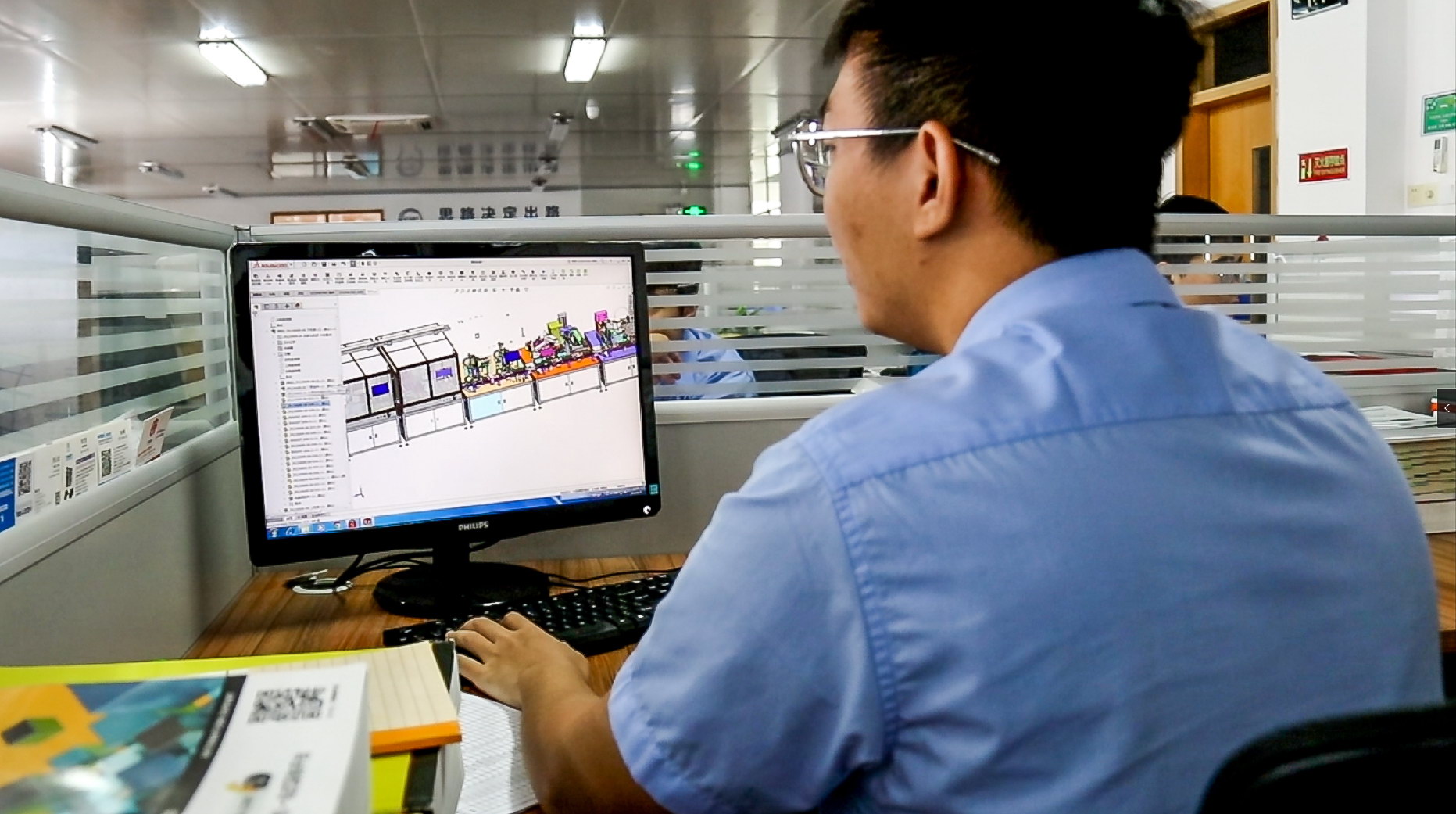 第二步,根據(jù)客戶的要求對項目進行方案設計,包括用軟件繪制設備3D圖進行模擬,材料選擇、強度校核、計算各機構(gòu)節(jié)拍,從而計算設備整體產(chǎn)能等。