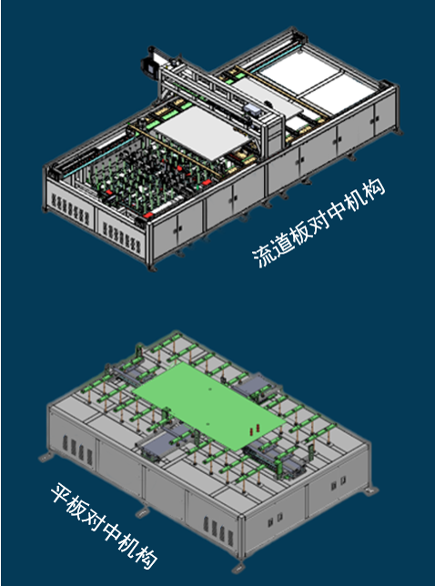 在冷水板組裝生產(chǎn)線(xiàn)中,流道板對(duì)中部分非常重要,這部分需要精確測(cè)量和加工,以確保冷水板在生產(chǎn)過(guò)程中保持水平衡,并且所有部件都能夠在正確的方向上流動(dòng),平板對(duì)中部分則確保產(chǎn)品在同一平面上,并且能夠平穩(wěn)的流動(dòng)。