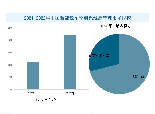 新能源汽車空調系統(tǒng)中的熱管理涉及到的PTC加熱器。在制熱方面,傳統(tǒng)燃油車熱源由發(fā)動機的余熱提供,而新能源汽車則主要通過PTC加熱器或熱泵系統(tǒng)兩種方式來控制。目前PTC加熱器為新能源汽車主流制熱方法,具備成本低、熱效率高、壽命長等優(yōu)勢,熱泵系統(tǒng)具有能耗較低的優(yōu)勢,但成本偏高,技術壁壘高、低溫環(huán)境制熱效果差等缺陷仍限制著熱泵系統(tǒng)在新能源汽車領域的應用。